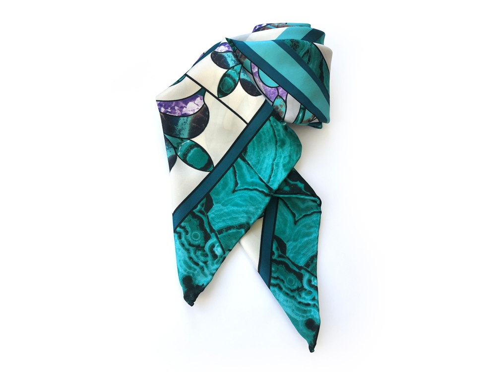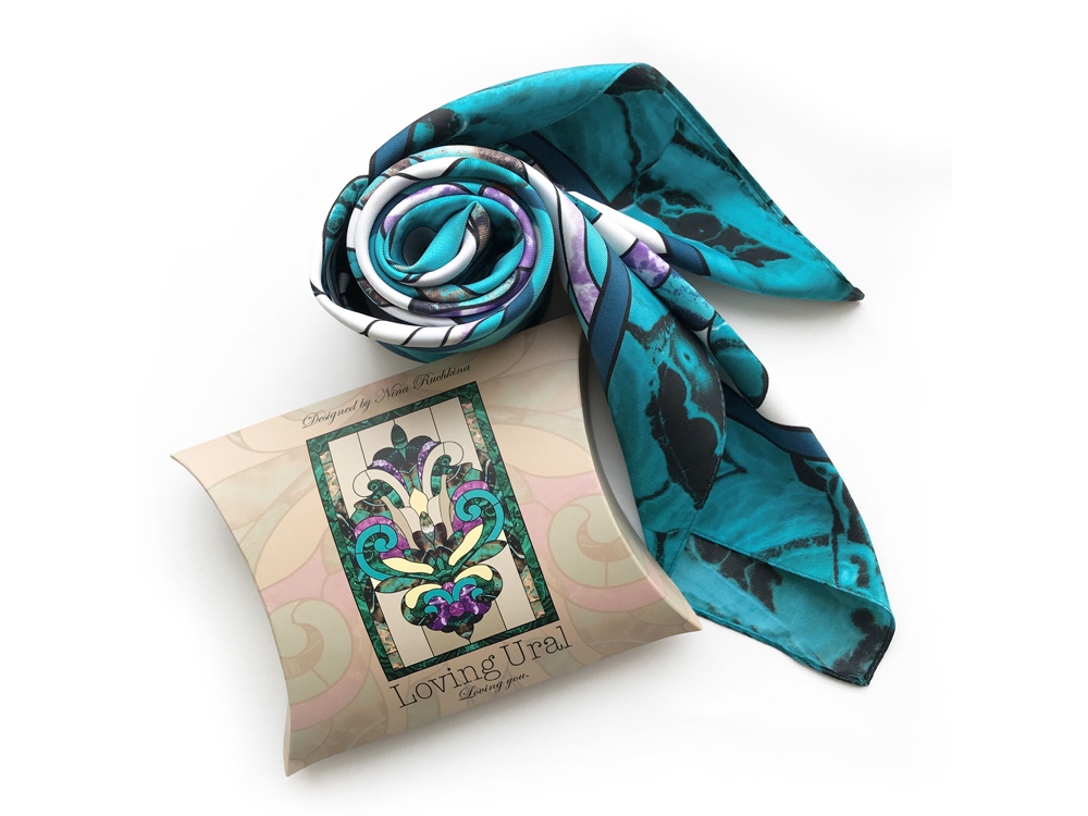 Это - первый дизайн из коллекции, посвященной Уралу. Каменный Цветок содержит в себе и малахит, аметист и другие кристаллы. Он символизирует богатство, щедрость природы Урала, соотносится с известным сказом Бажова о Каменном Цветке как о символе творческого поиска и совершенства.
