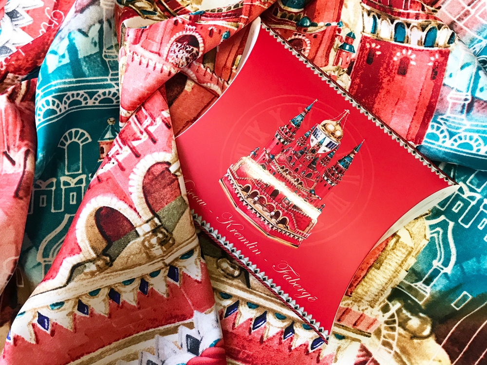 Платок Кремль - Москва - Фаберже от дизайнера Нины Ручкиной посвящён одним из самых красноречивых и ярких символов России. В центре композиции изображён Моско́вский Кремль (Успенский собор) — это ювелирное яйцо, одно из пятидесяти двух императорских пасхальных яиц, изготовленных прославленной фирмой Карла Фаберже для русской императорской семьи. Выполняя это необычайное по замыслу произведение, мастера фирмы Фаберже стремились создать образ древнего Кремля - одновременно величественного и сказочно - нарядного. Перед нами своеобразная, виртуозная вариация на тему кремлевской архитектуры. Яйцо Московский Кремль или Успенский собор является самым большим из яиц Фаберже, представляя собой Символ власти и духовности, примечательно, что в Успенском соборе венчались все цари России, в том числе и Николай II. Это одно из немногих яиц, которые никогда не покидали Россию. Сегодня это произведение ювелирного искусства можно увидеть в залах Оружейной палаты. Надеемся платок Кремль - Москва - Фаберже от бренда Русские в моде станет ярким акцентом в вашем гардеробе, ведь он несёт в себе ауру торжественности и величия, превращая его обладательницу в магнит для восхищённых, горящих глаз. Советы по уходу: -Наши платки сделаны с душой и нуждаются в ответной душевной заботе и внимании. -Они практически не мнутся, очень приятные на ощупь, нежные и мягкие. Любят бывать на людях, посещать светские мероприятия, не выносят одиночества. -Всегда готовы к экспериментам и смелым сочетаниям. Прослужат верой и правдой долгие годы, никогда не выйдут из моды и всегда будут уместны и кстати. -Ручная стирка 40 градусов.