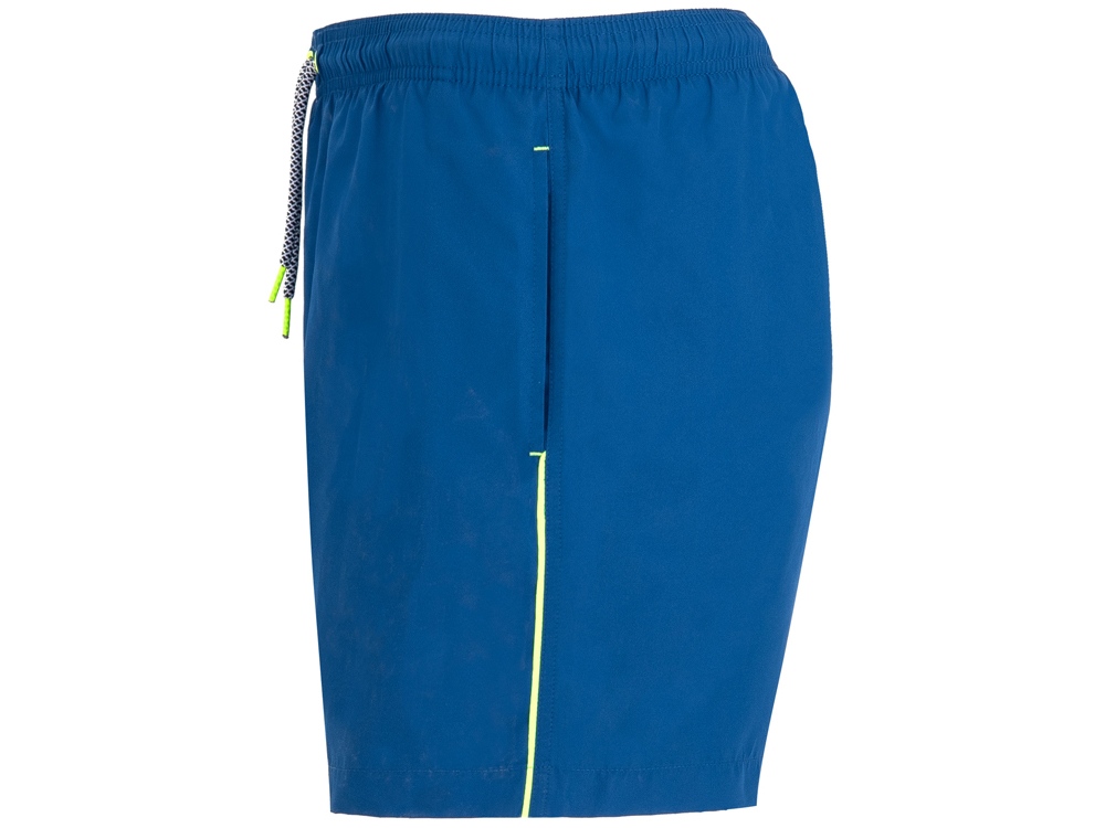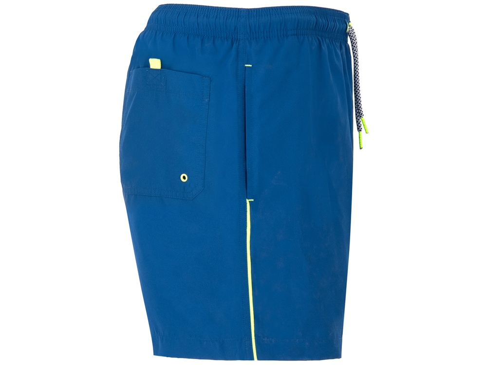 Плавательные шорты с двумя боковыми карманами. Эластичный пояс с регулируемым шнурком и контрастными металлическими люверсами. Задний карман с люверсом.