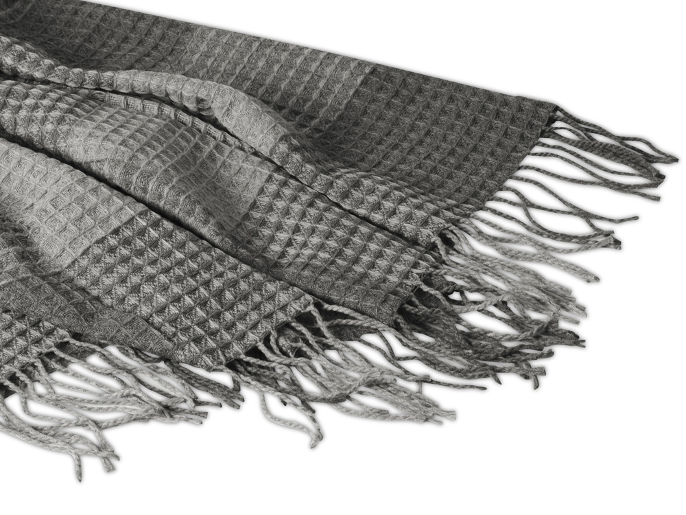 Теплый плотный плед из акрила, украшенный бахромой, имеет приятную на ощупь текстуру поверхности и создает атмосферу комфорта и уюта.