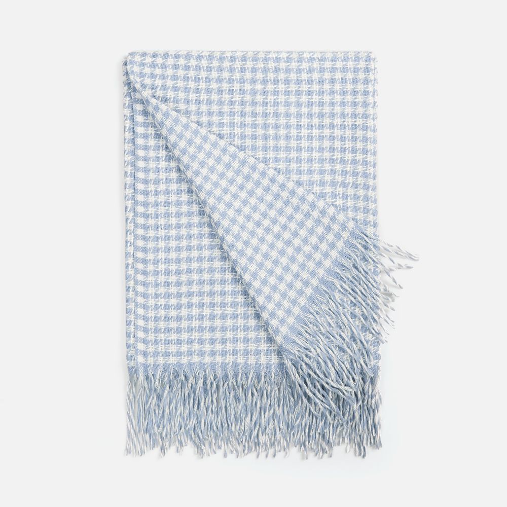 Графичный узор «гусиная лапка» (или «pied-de-poule») превращает изделие в изысканный интерьерный акцент, а бахрома добавляет ему элегантности и завершенности. Это воплощение безупречного вкуса и дань вневременной классике.