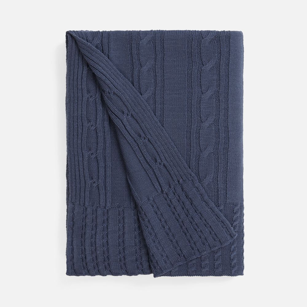 Тонкое переплетение вертикальных кос-жгутов создает благородную фактуру, где простота линий встречается с изысканной текстурой. Плед из мягкого акрила сохраняет тепло, оставаясь удивительно легким и воздушным.