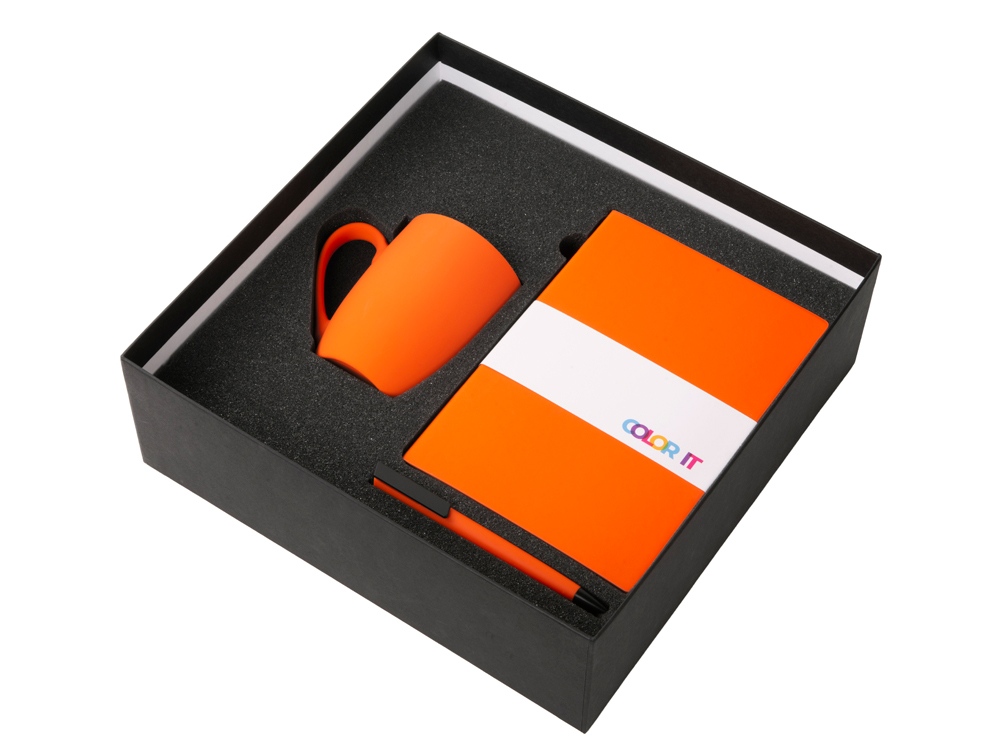 Color It — линейка, в которую входят хиты мерча в десяти самых популярных цветах. Еще никогда собрать сет под свой брендбук не было так просто. Широкая цветовая палитра серии позволяет создать идеальный набор в едином оттенке Pantone. Все товары имеют тактильно приятное покрытие софт-тач. Сет поставляется в коробке: мы продумали все, включая подарочную упаковку, за вас — осталось нанести лого! Фарфоровая кружка с удобной ручкой брендируется методом гравировки, поэтому нанесение будет долговечным и не сотрётся при мытье кружки. Бизнес-блокнот в гибкой обложке имеет ляссе в тон обложки и среза. Бумажный блок разлинован в линейку и выполнен из бумаги, полученной из древесины из специальных восполняемых лесных ресурсов, имеет сертификат FSC. Тонкое письмо ручки обеспечивается пишущим узлом с толщиной письма 0,5 мм с нажимным механизмом. Ручка имеет сменный стержень, поэтому такой мерч прослужит дольше обычной одноразовой ручки, долго напоминая о вас клиентам. - объём кружки: 300 мл; - блокнот А5 128 листов; - ручка с необычным слайдером; - подарочная упаковка из картона, оклеенного дизайнерской бумагой уже включена в набор.