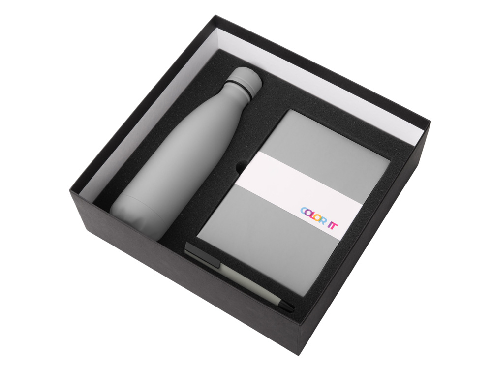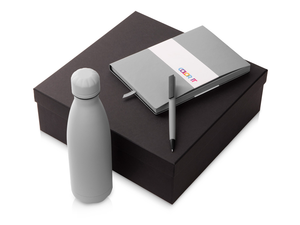 Color It — линейка, в которую входят хиты мерча в десяти самых популярных цветах. Еще никогда собрать сет под свой брендбук не было так просто. Широкая цветовая палитра серии позволяет создать идеальный набор в едином оттенке Pantone. Все товары имеют тактильно приятное покрытие софт-тач. Сет поставляется в коробке: мы продумали все, включая подарочную упаковку, за вас — осталось нанести лого! Классическая форма термобутылки сочетается с продуманной и технологичной конструкцией: вакуумная теплоизоляция и двойные стенки бутылки обеспечивают качественное сохранение температуры напитка до 24-х часов! Блокнот имеет гибкую обложку и 256 страниц в линейку, даты не указаны, что позволяет начать вести блокнот в любой удобный день года. Ляссе, срез блока и форзац окрашены в тон обложки. Тонкое письмо ручки обеспечивается пишущим узлом с толщиной письма 0,5 мм с нажимным механизмом. - бумага соответствует стандартам FSC; - софт-тач покрытие на всех предметах набора; - объём бутылки: 500 мл; - подарочная упаковка с дизайнерской бумагой уже включена в набор.