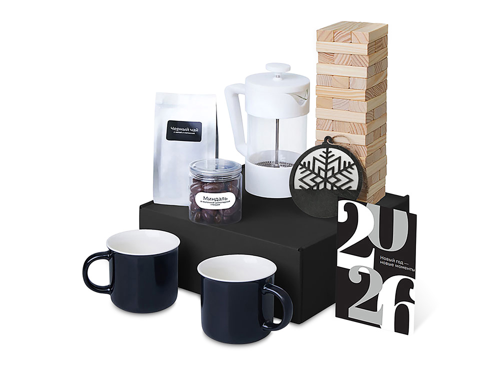 Новый год — новые моменты, которые хочется прожить по-настоящему. Вспомните детство, когда мы никуда не спешили, наслаждались каждым мгновением и делали то, что нам нравилось. Наборы серии Re: напоминают: важнее всего человек, а не его роль. Они дарят возможность замедлиться, отложить гаджеты и насладиться настоящим. Пусть новогоднее время станет паузой, наполненной тишиной, теплом и моментами, которые восстанавливают перед новым годом. Каждый набор — как мини-ритуал: согреться, замедлиться, почувствовать себя, поблагодарить и восстановиться после года, полного скорости, дедлайнов и шума. Это не о деловом спасибо — это о настоящем внимании. Это о том, чтобы сказать: Я вижу, сколько ты сделал. А теперь — время для тебя. Набор Re:Together — о моментах, которые хочется разделить с близкими. Заварите чай с травами во френчпрессе, разлейте по кружкам и насладитесь временем с теми, кто дорог. Побалуйте себя сладким миндалём в глазури, проведите время за весёлой игрой и душевными разговорами. Маленькая подвеска на ёлку станет символом этих мгновений, напоминая о важности совместного времени и тёплых воспоминаний.