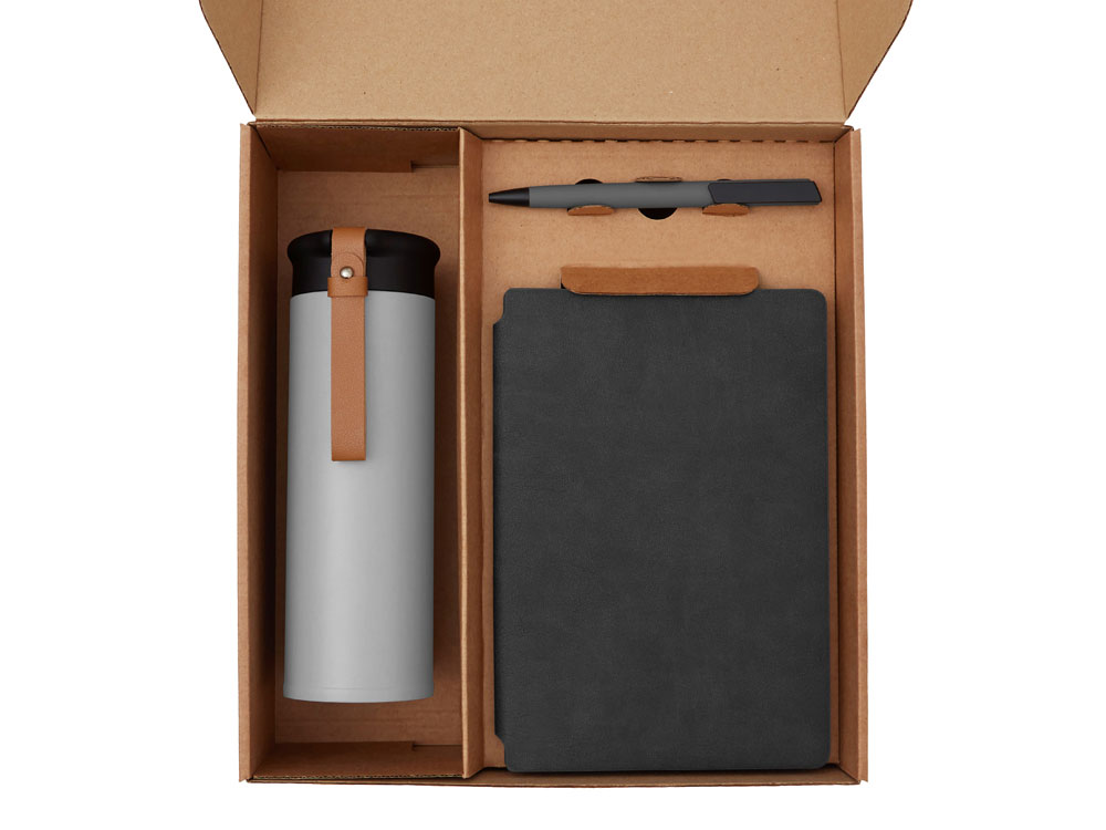 | Материал товара | термос - нержавеющая сталь, покрытие софт-тач, блокнот - термопластичный полиуретан с зернистой структурой, ручка - пластик с покрытием софт-тач, стикеры - смола |