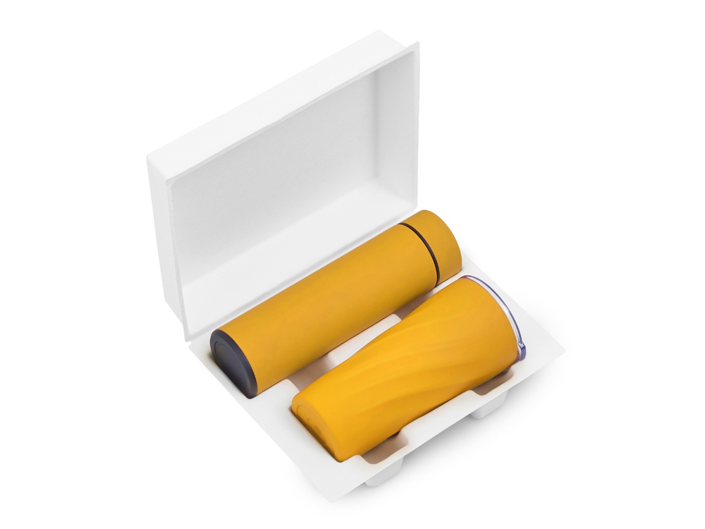 Еще никогда создать персонализированный набор в рамках вашего брендбука не было так просто! Набор Family с термосом и термокружкой — это воплощение функциональности и индивидуальности. Широкая палитра цветов позволяет создать идеальный сет в едином оттенке Pantone, а тактильно приятное soft-touch покрытие на всех предметах делает его по-настоящему особенным. Легкий и яркий набор термоса и термокружки позволяет наслаждаться любимыми напитками в дороге, на работе или в походе, обеспечивая комфорт и энергию в любой ситуации. Мы продумали все до мелочей, включая подарочную упаковку. Сет поставляется в стильной коробке, что делает его готовым подарком — вам осталось лишь нанести логотип! Термокружка изготовлена из высококачественной нержавеющей стали с двойными стенками и вакуумной изоляцией, что обеспечивает длительное сохранение температуры напитка. Внутренняя часть выполнена из стали 304, внешняя — из 201. Кружка оснащена прозрачной крышкой, а ее поверхность покрыта приятным на ощупь soft-touch материалом. Термос выполнен из нержавеющей стали и покрыт цветным soft-touch покрытием. Его особенность — инновационная крышка со встроенным термометром и LED-дисплеем, который отображает температуру напитка внутри. - Soft-touch покрытие на всех предметах набора - Объем термокружки: 600 мл - Объем термоса: 500 мл - Идеальное решение для корпоративных подарков и продвижения бренда.