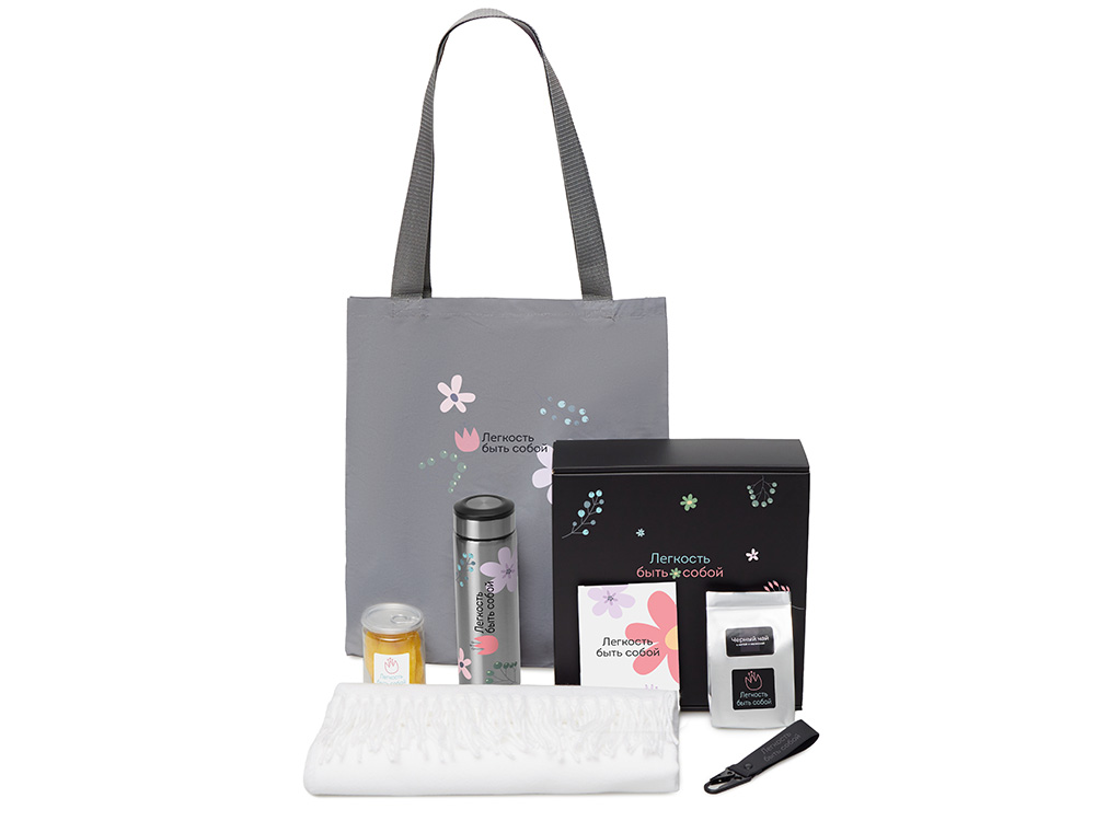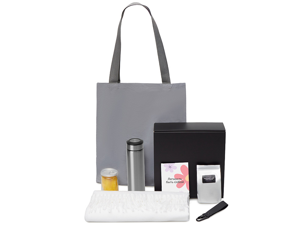 | Материал товара | палантин - полиэстер, термос - нержавеющая сталь, чай - пластик - брелок-ремувка - искусственная кожа, металл, манго - пластик, светоотражающая сумка - полиэстер, мешок - нетканый материал (спанбонд), коробка - картон |