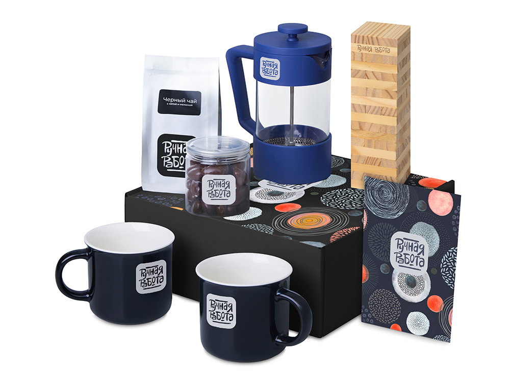 | Материал товара | кружка - костяной фарфор, френч-пресс - боросиликатное стекло, нержавеющая сталь, пластик, чай - пластик, игра - сосна, миндаль - пластик, мешок - нетканый материал (спанбонд), коробка - картон |