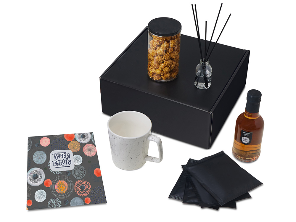 | Материал товара | диффузор - стекло, кофе в дрип пакете - пластик, кружка - костяной фарфор, попкорн - пластик, металл, мешок - нетканый материал (спанбонд), коробка - картон |