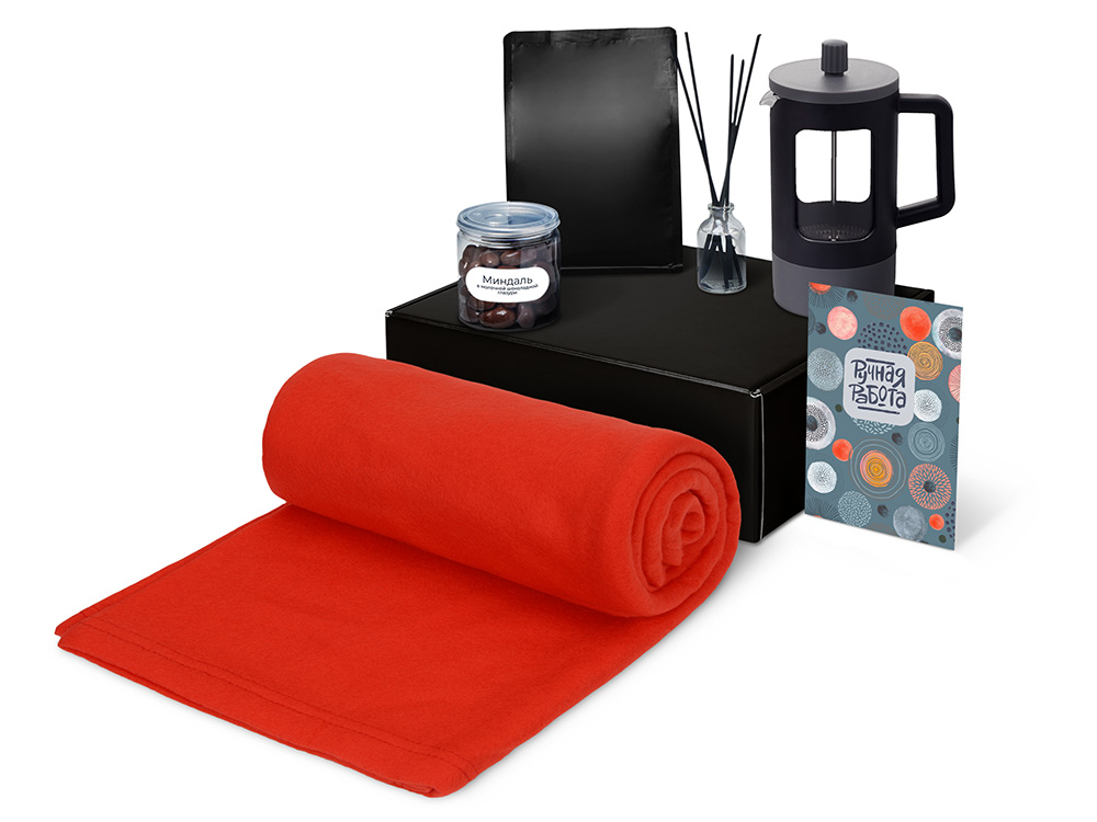 | Материал товара | плед - флис, полиэстер, кофе - пластик, френч-пресс - нержавеющая сталь, боросиликатное стекло, ПП пластик, диффузор - стекло, миндаль - пластик, мешок - нетканый материал (спанбонд), коробка - картон |