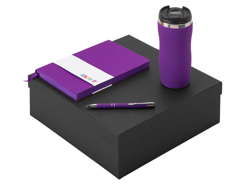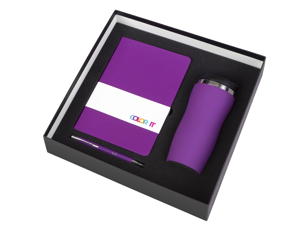 Color It — линейка, в которую входят хиты мерча в десяти самых популярных цветах. Еще никогда собрать сет под свой брендбук не было так просто. Широкая цветовая палитра серии позволяет создать идеальный набор в едином оттенке Pantone. Все товары имеют тактильно приятное покрытие софт-тач. Сет поставляется в коробке: мы продумали все, включая подарочную упаковку, за вас — осталось нанести лого! Термокружка оснащена плотно завинчивающейся крышкой, которая исключает проливание содержимого. Откидной клапан позволяет пить, не снимая крышку. Сохранение температуры осуществляется благодаря вакуумной изоляции и двойным стенкам. Бизнес-блокнот в гибкой обложке имеет ляссе в тон обложки и среза. Бумажный блок разлинован в линейку и выполнен из бумаги, полученной из древесины из специальных восполняемых лесных ресурсов, имеет сертификат FSC. Шариковая ручка имеет сменный стержень, поэтому такой мерч прослужит дольше обычной одноразовой ручки, долго напоминая о вас клиентам. - софт-тач покрытие на всех предметах набора; - объём термокружки: 350 мл; - блокнот А5 128 листов; - ручка с необычным слайдером; - подарочная упаковка из картона, оклеенного дизайнерской бумагой уже включена в набор.