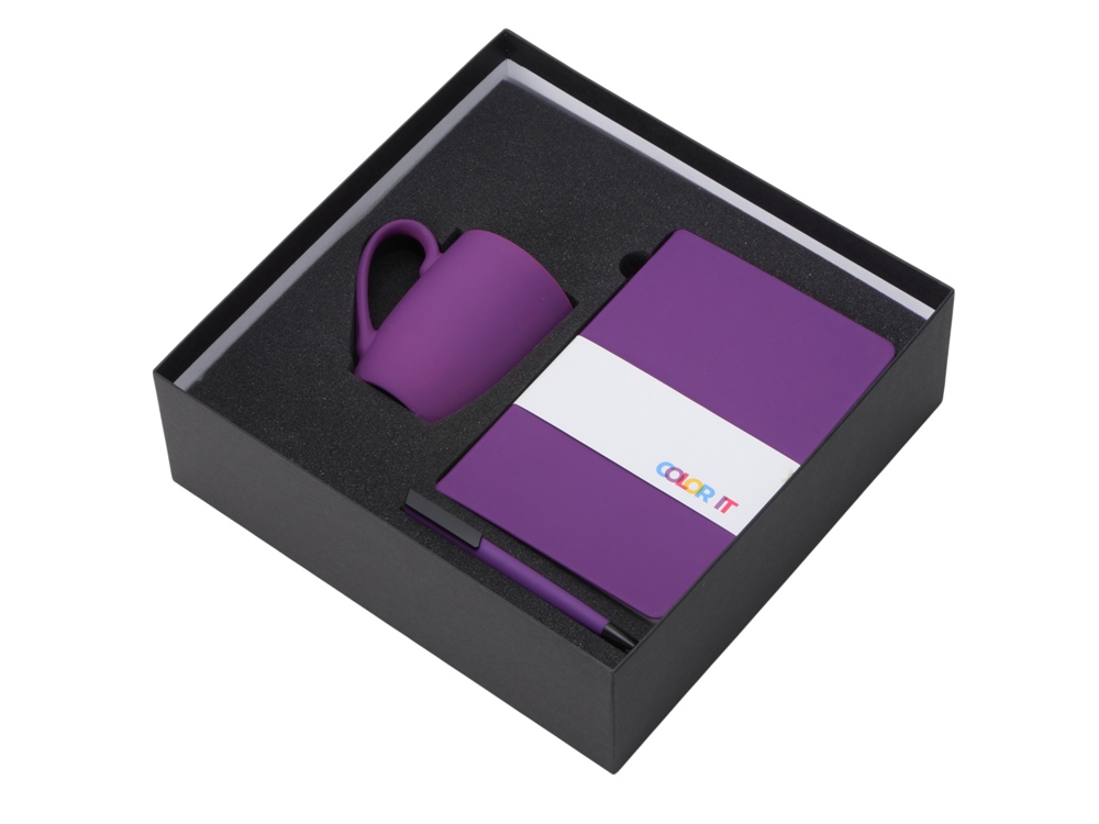 Color It — линейка, в которую входят хиты мерча в десяти самых популярных цветах. Еще никогда собрать сет под свой брендбук не было так просто. Широкая цветовая палитра серии позволяет создать идеальный набор в едином оттенке Pantone. Все товары имеют тактильно приятное покрытие софт-тач. Сет поставляется в коробке: мы продумали все, включая подарочную упаковку, за вас — осталось нанести лого! Фарфоровая кружка с удобной ручкой брендируется методом гравировки, поэтому нанесение будет долговечным и не сотрётся при мытье кружки. Бизнес-блокнот в твёрдой обложке имеет ляссе в тон обложки и среза. Бумажный блок разлинован в линейку и выполнен из бумаги, полученной из древесины из специальных восполняемых лесных ресурсов, имеет сертификат FSC. Тонкое письмо ручки обеспечивается пишущим узлом с толщиной письма 0,5 мм с нажимным механизмом. Ручка имеет сменный стержень, поэтому такой мерч прослужит дольше обычной одноразовой ручки, долго напоминая о вас клиентам. - объём кружки: 360 мл; - блокнот А5 128 листов; - ручка с необычным слайдером; - подарочная упаковка из картона, оклеенного дизайнерской бумагой уже включена в набор
