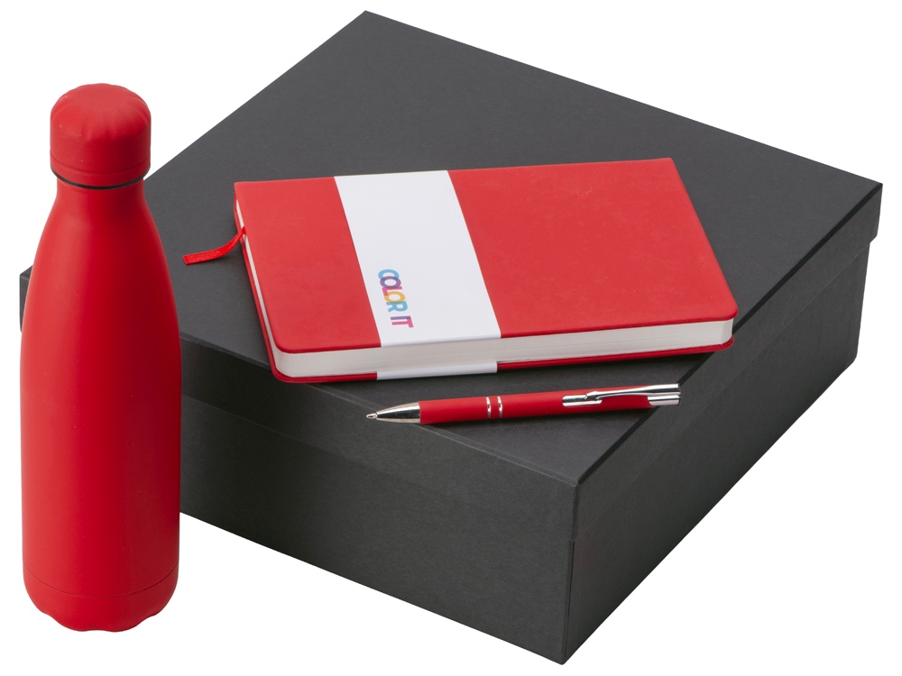 | Материал товара | блокнот - искусственная кожа с покрытием софт-тач, ручка - алюминий с покрытием софт-тач, термобутылка - нержавеющая cталь с покрытием софт-тач, коробка - картон |