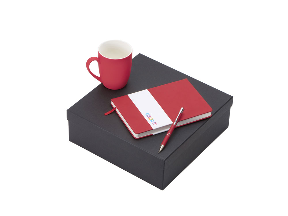 | Материал товара | блокнот - полиуретан с покрытием софт-тач, картон, ручка - алюминий с покрытием софт-тач, кружка - фарфор с покрытием софт-тач, коробка - картон |