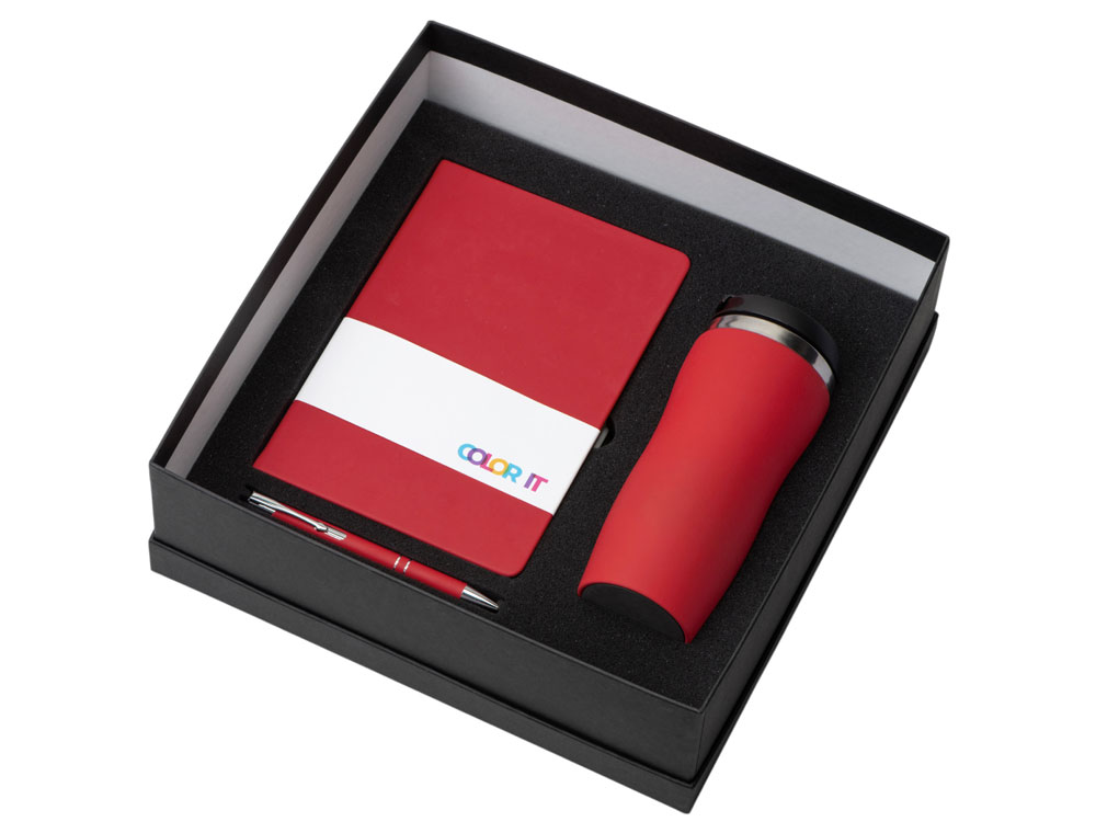 | Материал товара | блокнот - полиуретан с покрытием софт-тач, ручка - алюминий с покрытием софт-тач, кружка - нержавеющая cталь с покрытием софт-тач, коробка - картон |