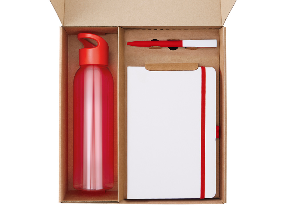| Материал товара | бутылка -поликарбонат, блокнот - искусственная кожа, бумага, ручка - пластик с покрытием софт-тач, держатель - пластик, ланчбокс - пластик, открытка - картон, коробка - картон |