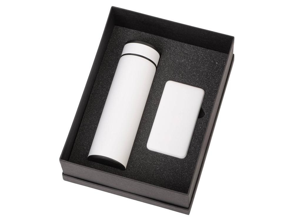 | Материал товара | термос - нержавеющая cталь с покрытием софт-тач, внешний аккумулятор- пластик с покрытием софт-тач |
