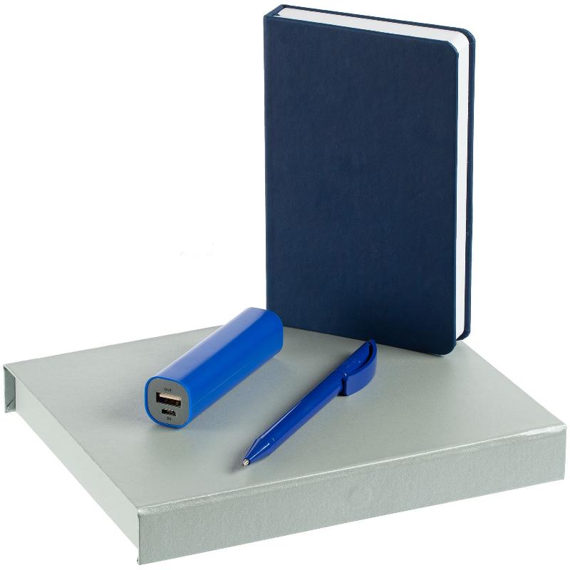 | В комплекте | Внешний аккумулятор2000 мАч, Блокнот, Ручка шариковая, Коробка под наборы с блокнотами серебристая, Ложемент под блокнот, аккумулятор и ручку |