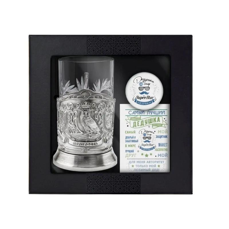 Купить Подарочный набор с подстаканником "Мудрому руководителю" никелированный с чернением в интернет-магазине в Уфе