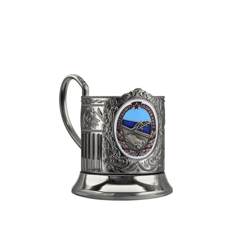 Купить Подстаканник "Дорожник" никелированный с чернением с эмалью в интернет-магазине в Уфе