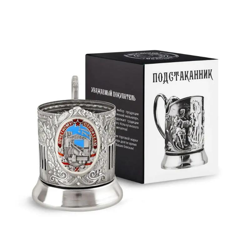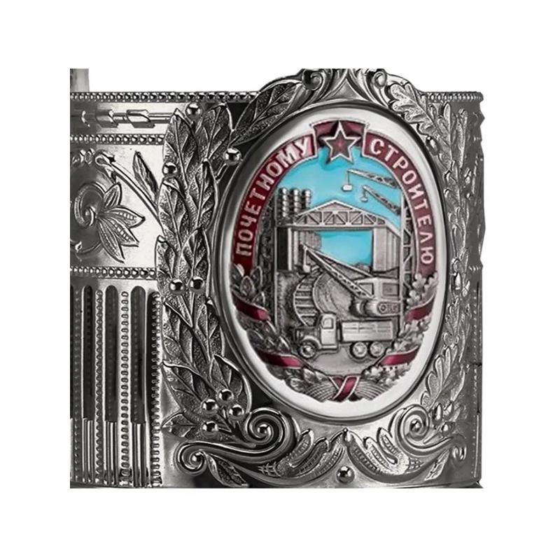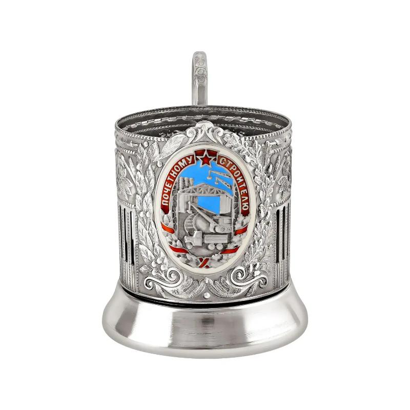 Купить Подстаканник "Почетному Строителю" никелированный с чернью с эмалью в интернет-магазине в Уфе