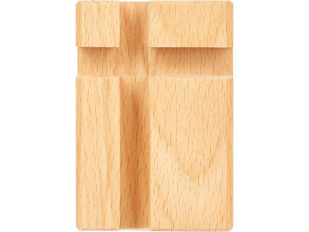 Подставка для смартфона сделана из высококачественного бука, что гарантирует прочность и экологическую безопасность изделия. В ней находятся две различные выемки, способные держать устройства различных размеров как с чехлом, так и без него. Материал безопасен для использования на любых поверхностях. Легко моется теплой водой.