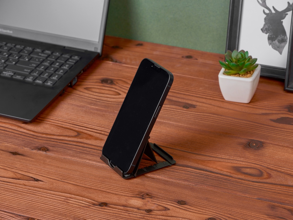 Компактная складная подставка позволяет расположить смартфон под комфортным углом наклона, что позволяет пользоваться гаджетом одной рукой. Это помогает не тратить время на лишние действия, чтобы проверить почту или мессенджеры как во время работы, так и в обеденный перерыв. Логотип можно нанести на фронтальной и обратной стороне, что делает его максимально заметным.