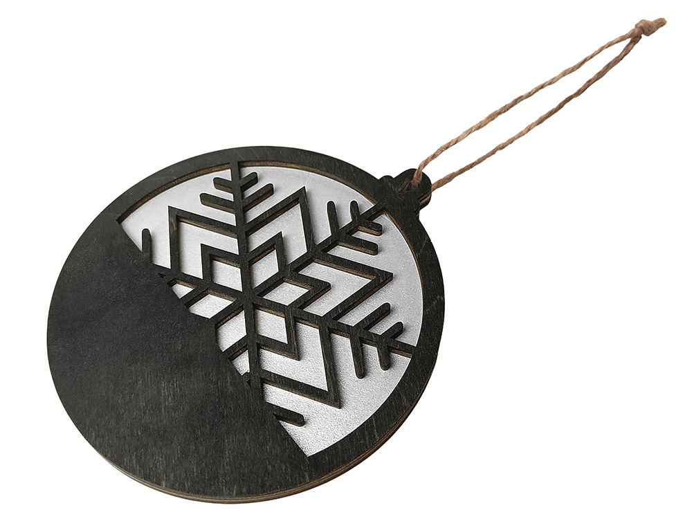 Стильная и минималистичная подвеска в форме снежинки выполнена из натуральной березовой фанеры. Сочетание черного и серебристого оттенков создаёт ощущение зимнего холода и утончённой простоты. Идеально подходит для украшения интерьера, ёлки или упаковки подарка. Такой сувенир подчеркнёт внимание к деталям и станет оригинальным акцентом в корпоративном или праздничном наборе.