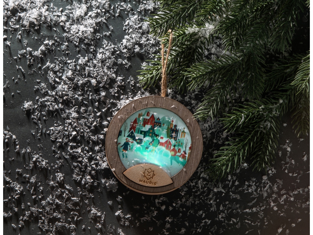 Новогодняя подвеска для елки станет прекрасным вариантом подарка: посмотрите, эти игрушки видно не только при свете дня, но и в темноте, ведь они могут светить сами! Игрушка с подсветкой выполнена из фанеры, фрагмент с изображением — напечатан на пропускающем свет материале. Подвеска сияет мягким разноцветным светом, подчеркивая пейзаж. Станет прекрасным вариантом для подарка, который будет радовать ваших адресатов долгие годы, каждую зиму красуясь на зеленых лапах елки.