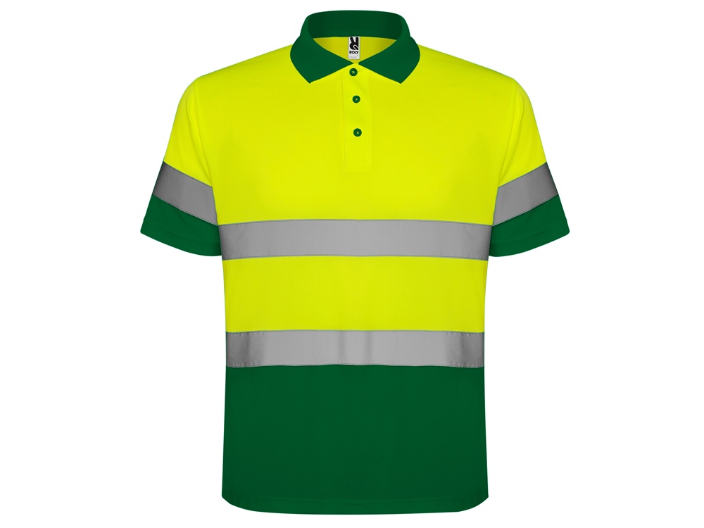 Техническая рубашка поло с короткими рукавами. Планка на 3 пуговицы. Воротник из риба 1 x 1. Две горизонтальные светоотражающие полосы на туловище и рукавах. Ткань предотвращает зацепление.