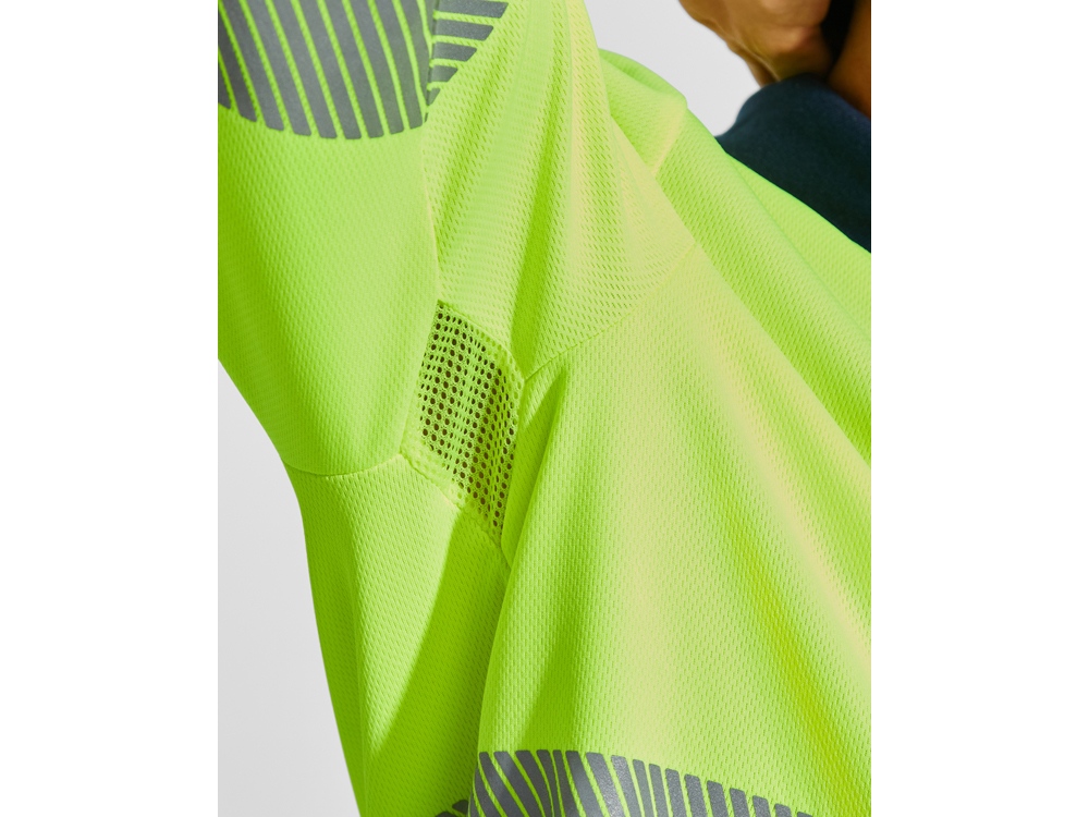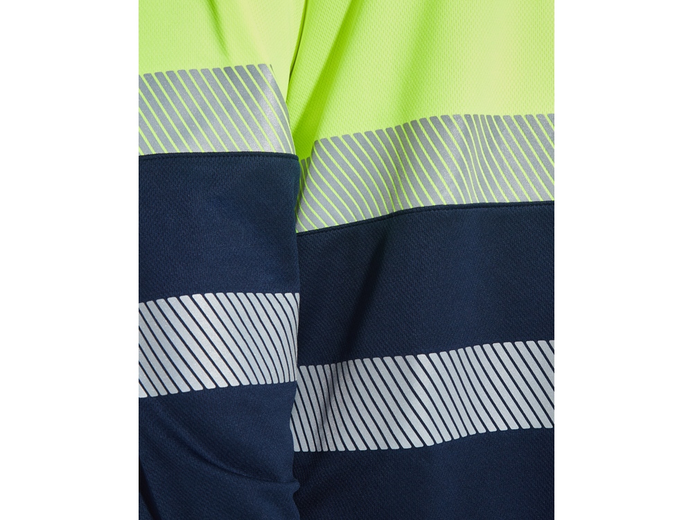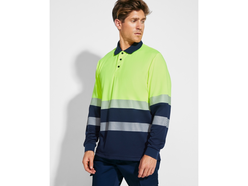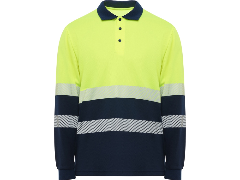 Светоотражающая рубашка·поло с длинным рукавом из технической ткани. · Две светоотражающие сегментированные полосы на груди и спине. · Застежка планки на 3 пуговицы. · Воротник и манжеты из риба 1х1. · Быстро высыхающая ткань. · Дополнительный карман.
