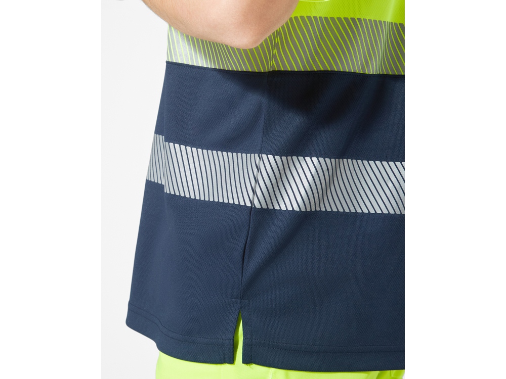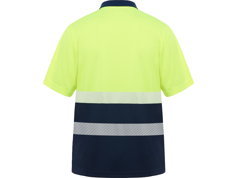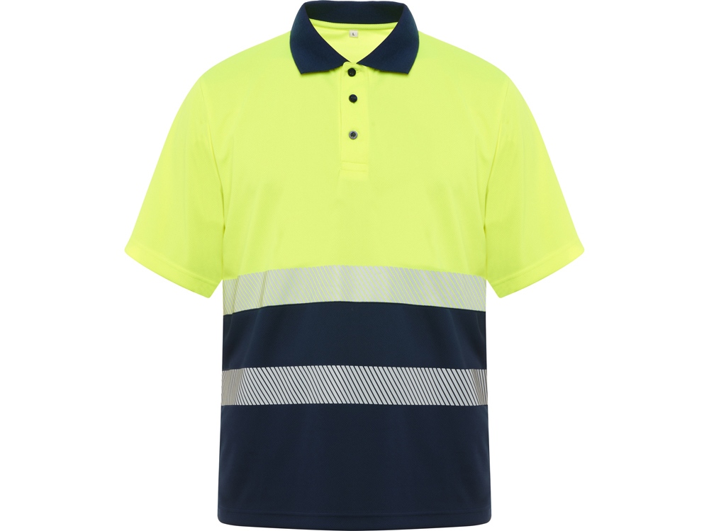 Рубашка поло из технической ткани с коротким рукавом. · Две светоотражающие сегментированные полосы на груди и спине. · Планка с застежкой на 3 пуговицы. · Воротник из риба 1x1. · Быстро высыхающая ткань. · Дополнительный карман.