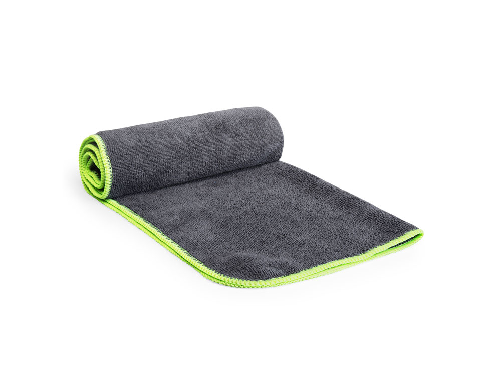 Пляжное полотенце двухцветного дизайна с практичным эластичным ремнем для удобного складывания.