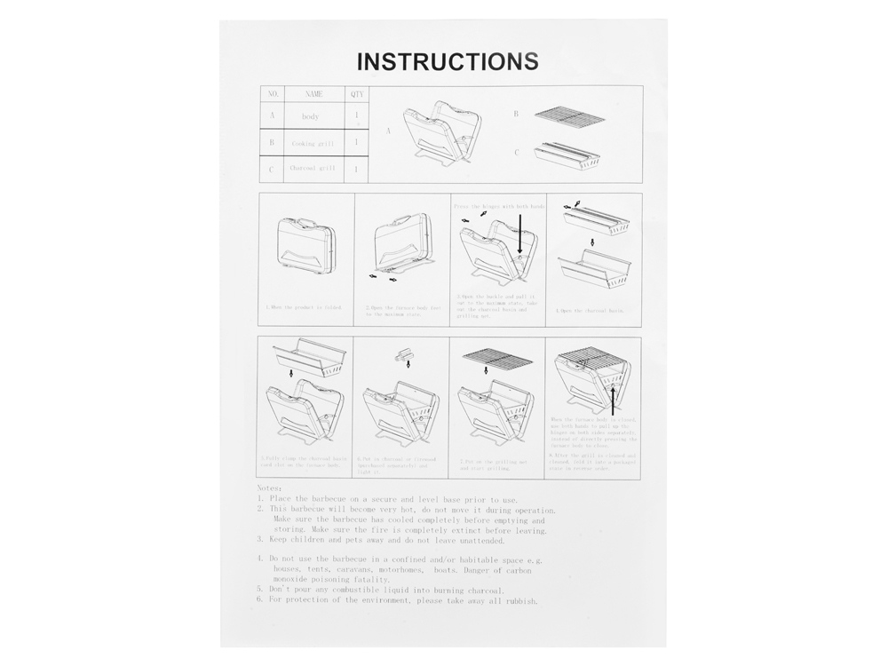 | Комплектность | гриль-чемодан, подставка для угля, решетка для гриля |