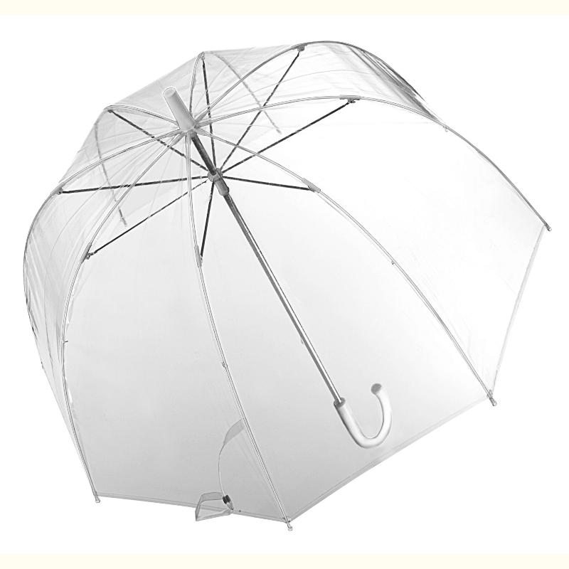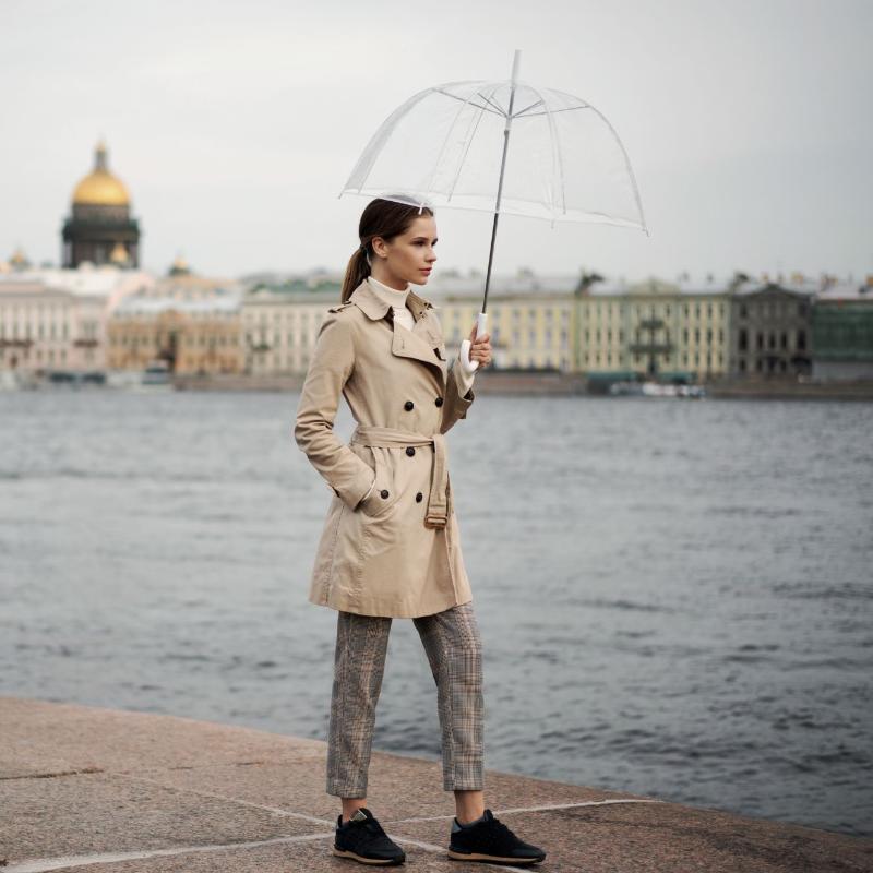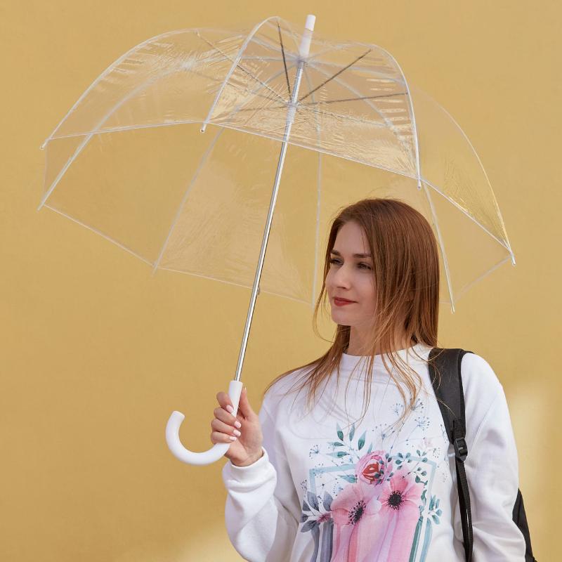 Довольно необычно смотрится совершенно прозрачный зонт трость. Бесцветный или чуть окрашенный в тот или иной оттенок, он покажет вашу неординарность с новой стороны, а также будет универсальным и стильным дополнением к вашему гардеробу на межсезонье. Это тот зонт, который вы видите на картинке