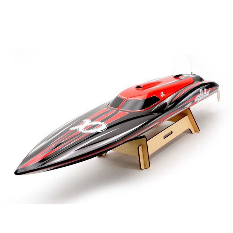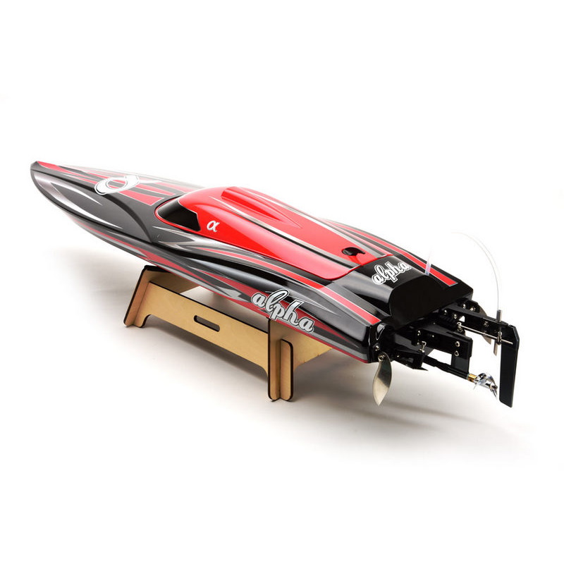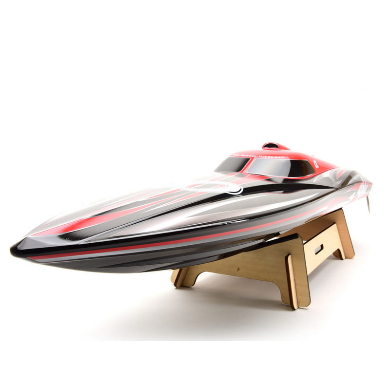 В комплекте готовая модель катера, аккумуляторная батарея, зарядное устройство, пульт управления, деревянная подставка, инструкция