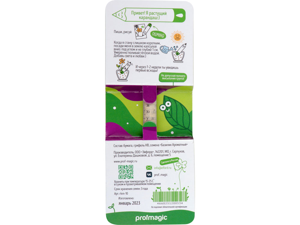 Растущие карандаши в мини-формате созданы для тех, кому не терпится поскорее посадить выбранное растение. Принцип работы такой же, как и у больших карандашей: пишите карандашом до тех пор, пока не останется 1 см до капсулы. Когда он станет коротким, посадите его под углом, погрузив капсулу в землю не более, чем на 1 см. Поливайте и ухаживайте за ним, и уже через 15-25 дней базилик даст первые всходы.
