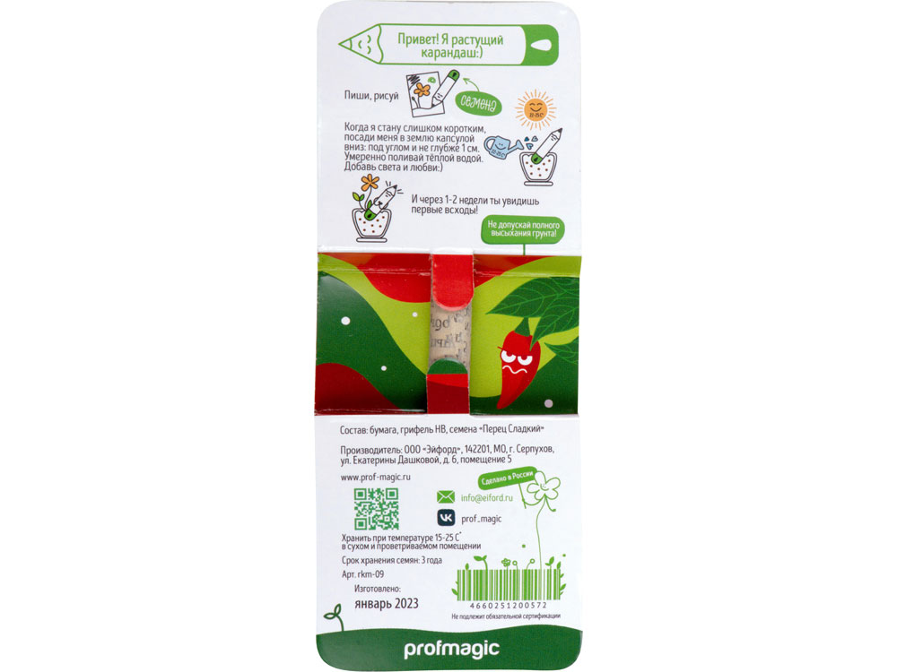 Растущие карандаши в мини-формате созданы для тех, кому не терпится поскорее посадить выбранное растение. Принцип работы такой же, как и у больших карандашей: пишите карандашом до тех пор, пока не останется 1 см до капсулы. Когда он станет коротким, посадите его под углом, погрузив капсулу в землю не более, чем на 1 см. Поливайте и ухаживайте за ним, и уже через 15-25 дней паприка даст первые всходы.