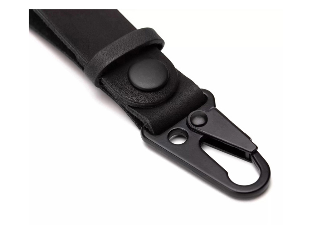 Ремешок сшит из прочной кожи чёрного цвета. Оборудован надёжным металлическим карабином, самопроизвольное расцепление которого невозможно. Ключи, прицепленные к нему, обречены вечно храниться в глубинах сумки или кармана джинсов, и у них нет ни единого шанса потеряться. Прицепить ремешок можно к шлёвке джинсов или к куртке.