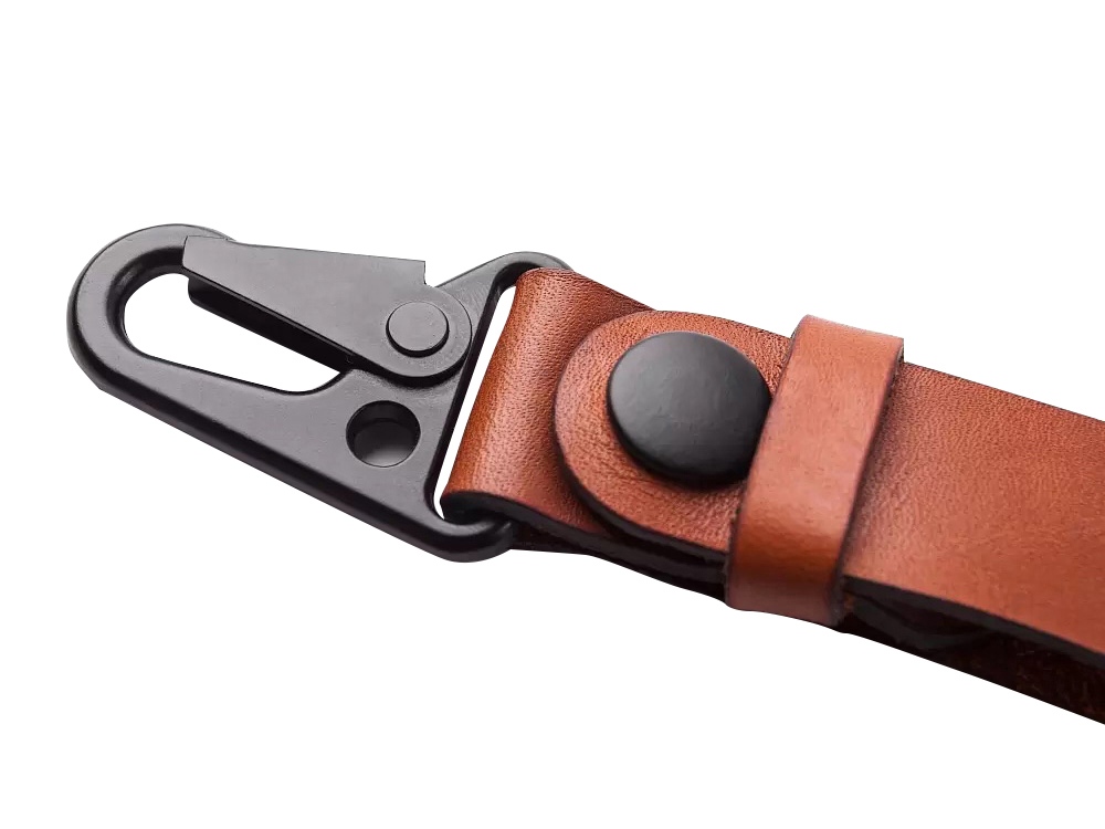 Ремешок сшит из прочной кожи оранжевого цвета. Оборудован надёжным металлическим карабином, самопроизвольное расцепление которого невозможно. Ключи, прицепленные к нему, обречены вечно храниться в глубинах сумки или кармана джинсов, и у них нет ни единого шанса потеряться. Прицепить ремешок можно к шлёвке джинсов или к куртке.