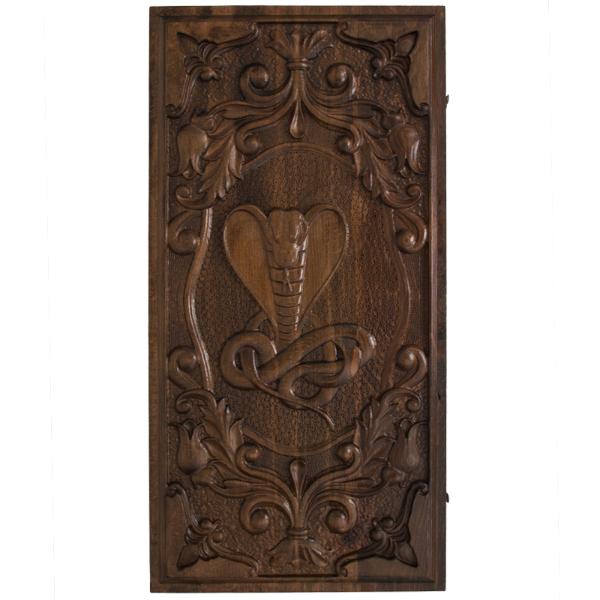 Древним символом мудрости и тайного знания украшены резные нарды Кобра. Вырезанные вручную из благородной древесины и покрытые бесчисленным количеством реалистичных деталей, они дышат спокойным сознанием силы и достоинства. Посидеть за партией в шашки или нарды за такой доской будет приятно как вам, так и вашему партнеру по игре. Каждый экземпляр делается на заказ индивидуально для вас.