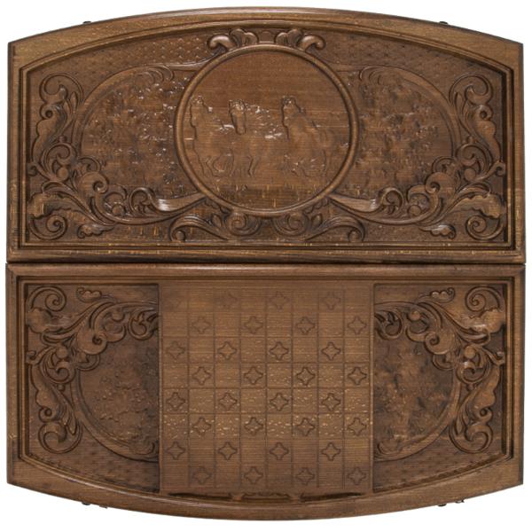 Вот мчится тройка удалая… Резные нарды Тройка с изображением резвых коней с развевающимися гривами вручную вырезаны и декорированы мастерами своего дела. Натуральное дерево красиво само по себе, а искусное морение и резьба подчеркивает его природную красоту. Металлическая фурнитура из черненой латуни расставляет яркие акценты в их дизайне.