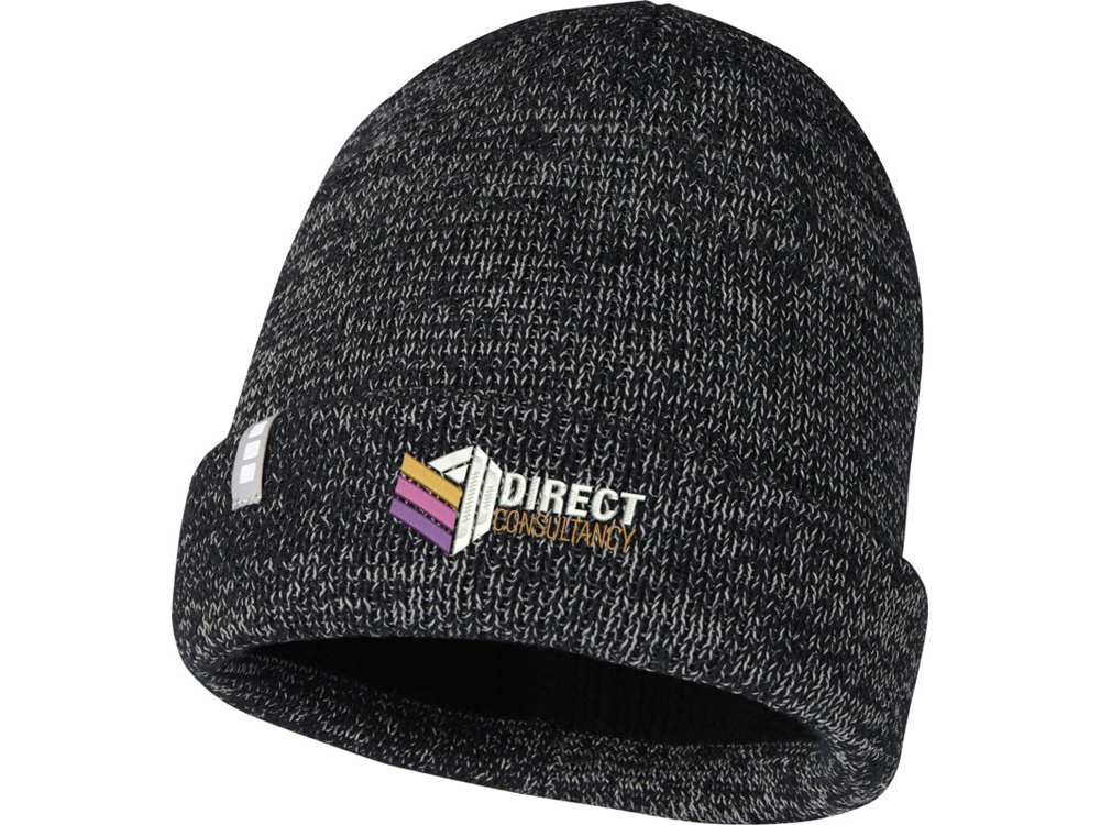 Однослойная шапка с двойным отворотом. Светоотражающие детали. Фирменная этикетка в виде петли. 100% Акрил, 9 класс.