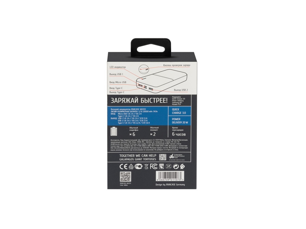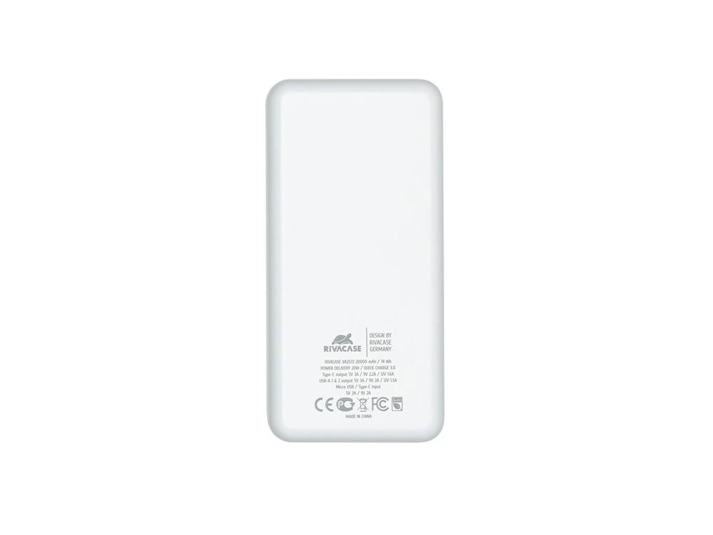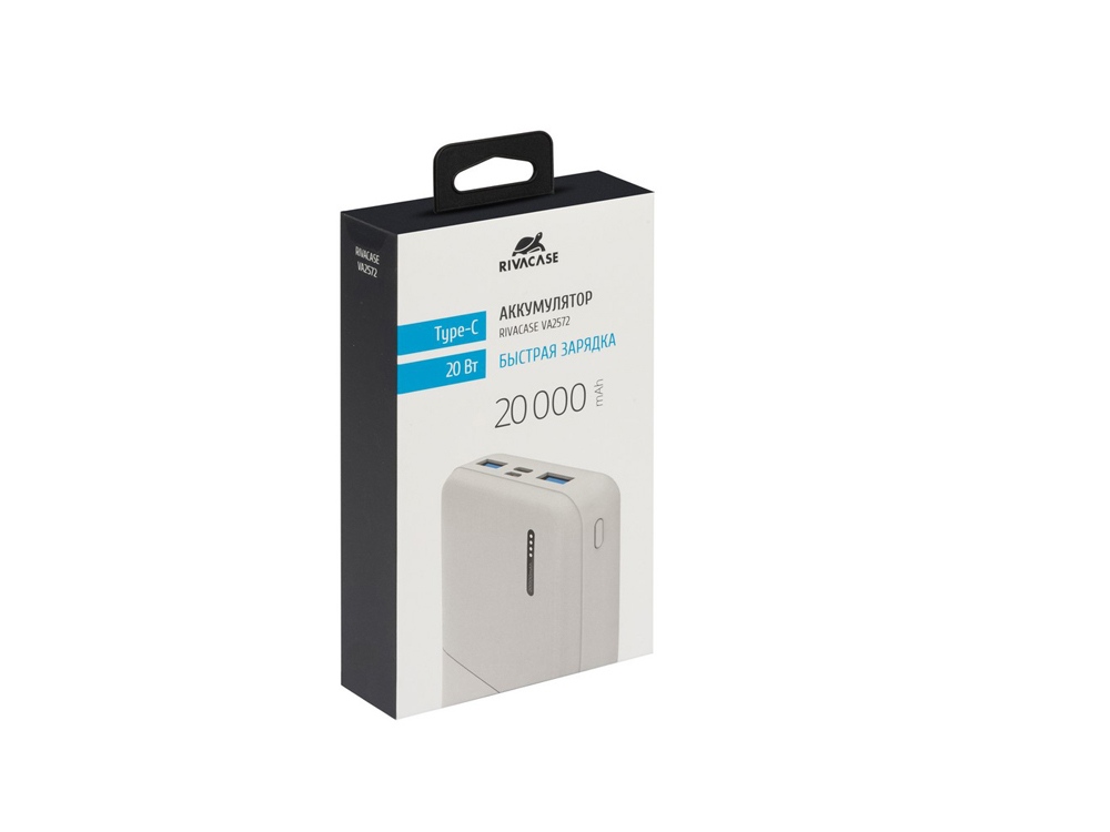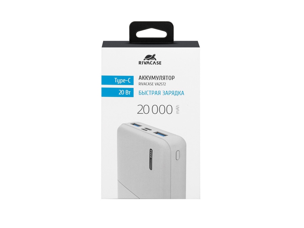 RIVACASE VA2572 (20000 мАч) QC/PD 20W внешний аккумулятор с дисплеем, белый 12/24