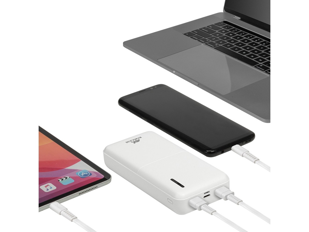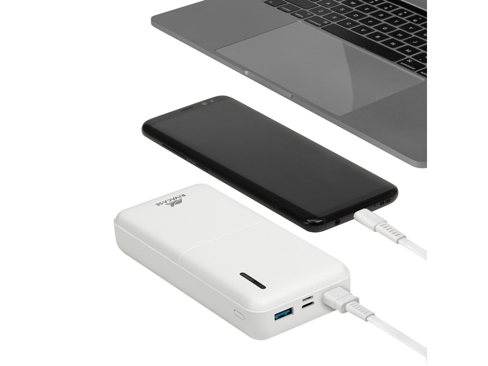 RIVACASE VA2572 (20000 мАч) QC/PD 20W внешний аккумулятор с дисплеем, белый 12/24 купить оптом и в розницу с нанесением логотипа в Уфе
