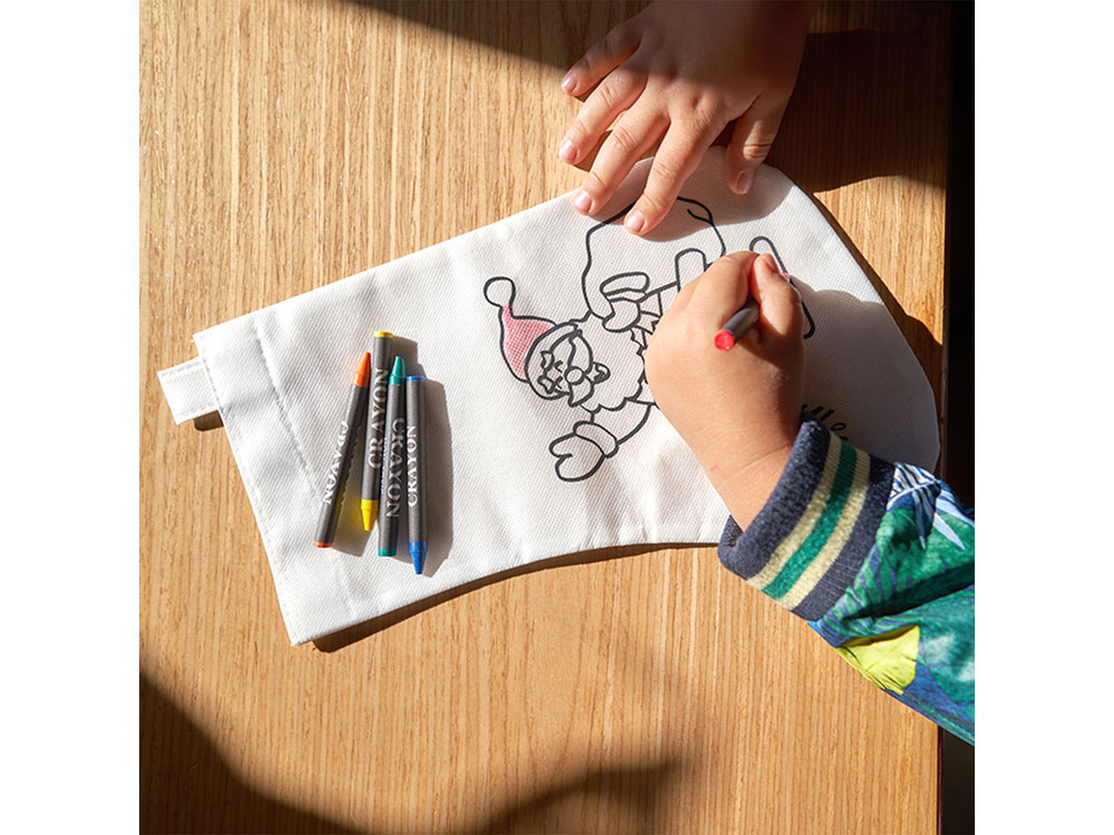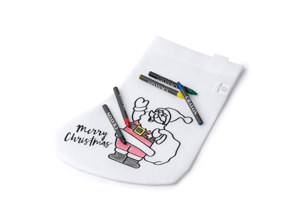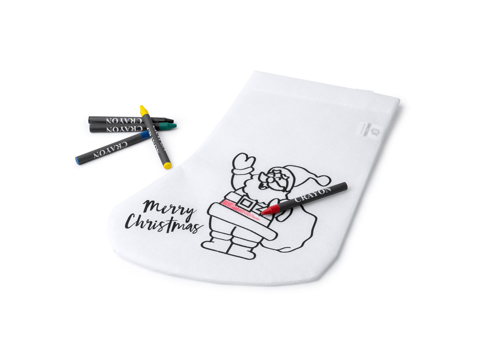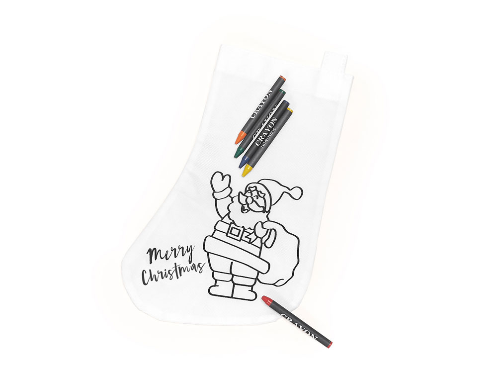 Рождественский чулок для раскрашивания. В комплекте 5 цветных мелков: синий, красный, черный, желтый и зеленый.