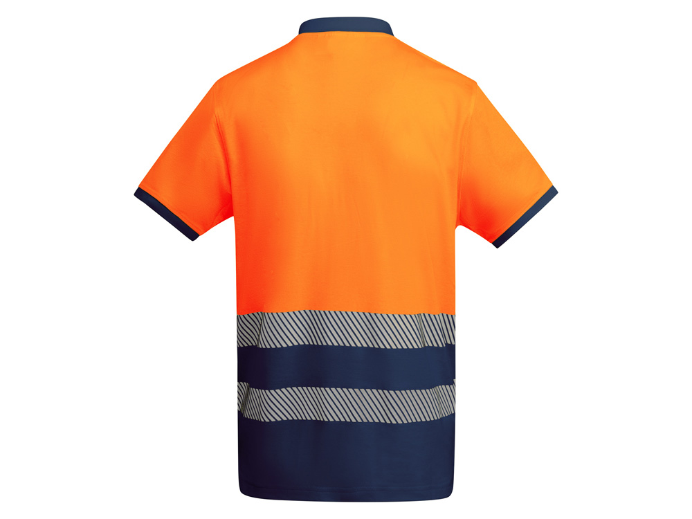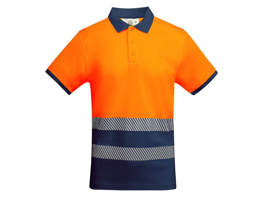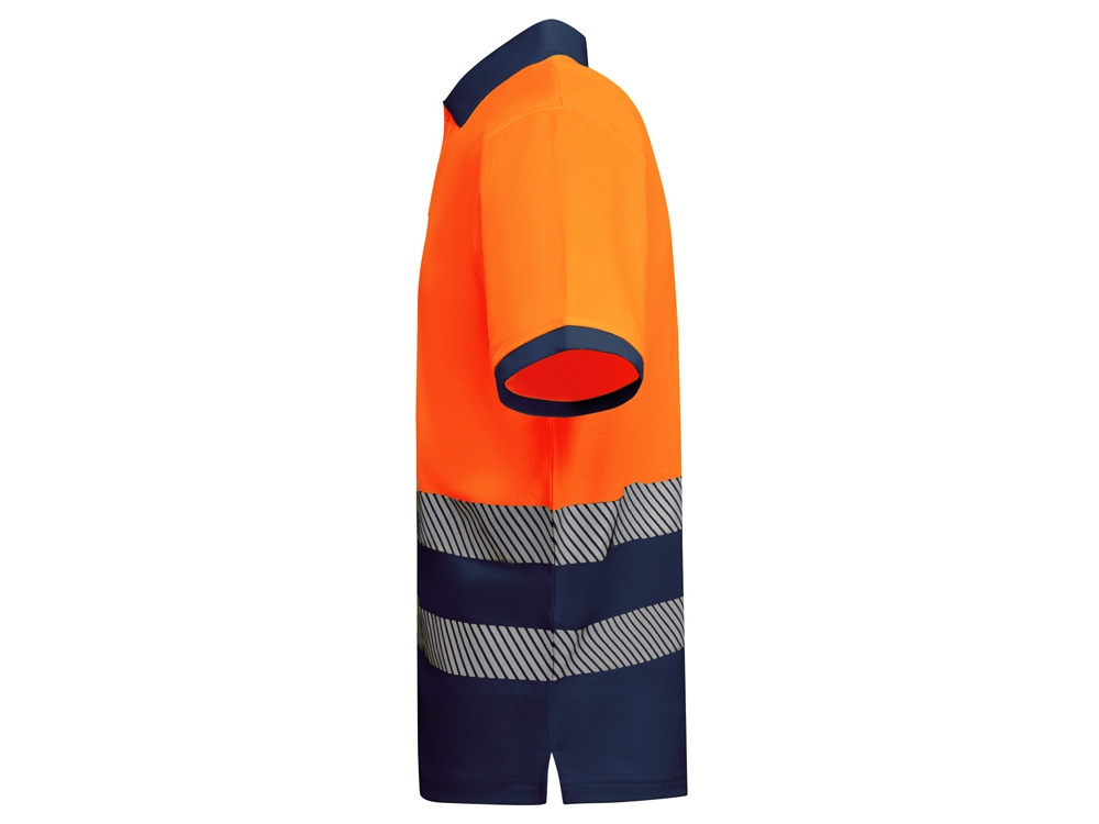 Рубашка поло со светоотражающими элементами с коротким рукавом с воротником в рубчик 1x1. Планка на 3 пуговицы. Две светоотражающие сегментированные полосы на груди. Микс полиэстера и хлопка для повышенной воздухопроницаемости. Дополнительный карман.