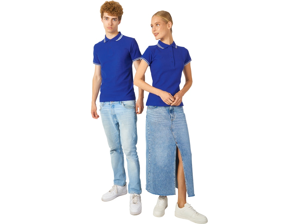 Рубашка-поло Erie с окантовкой. Воротник и манжеты резинка 1х1. Мужская модель с двумя пуговицами, женская - 4 пуговицы в тон изделия. Обшивка внутри воротника. Женская модель с разрезами по бокам. Женская модель приталена. Пике, 100% чесаный хлопок. Плотность 180 г/м2.