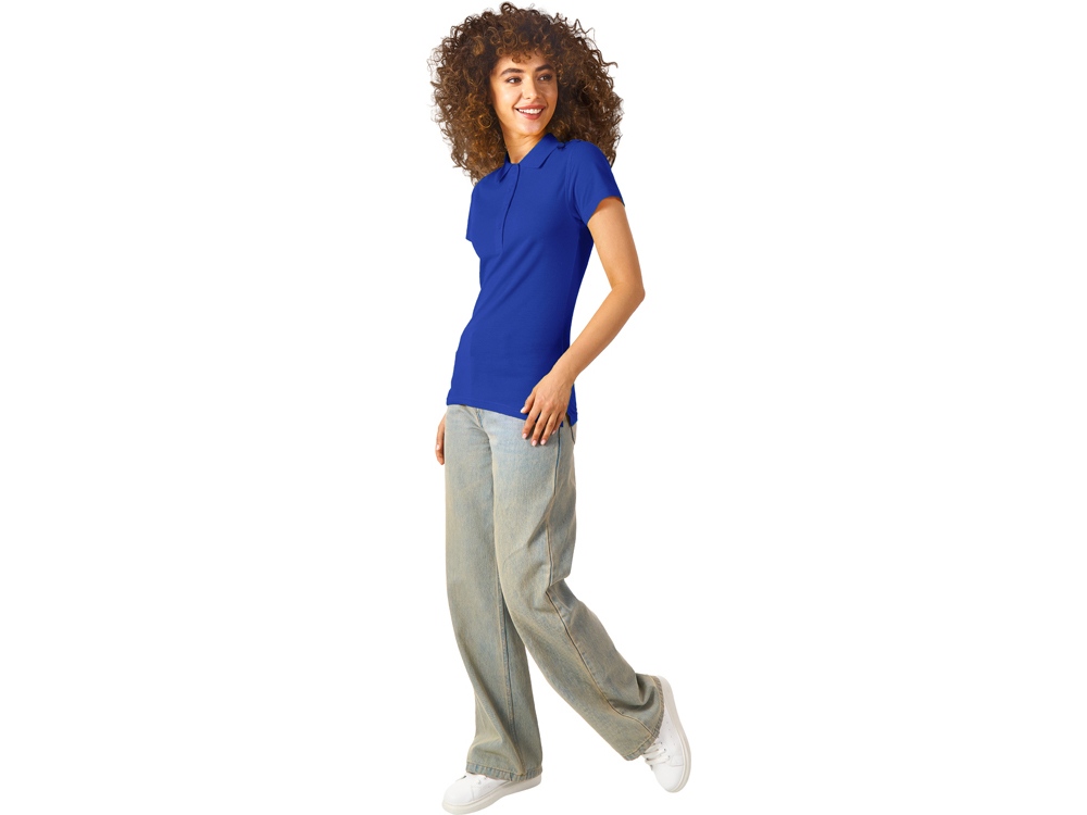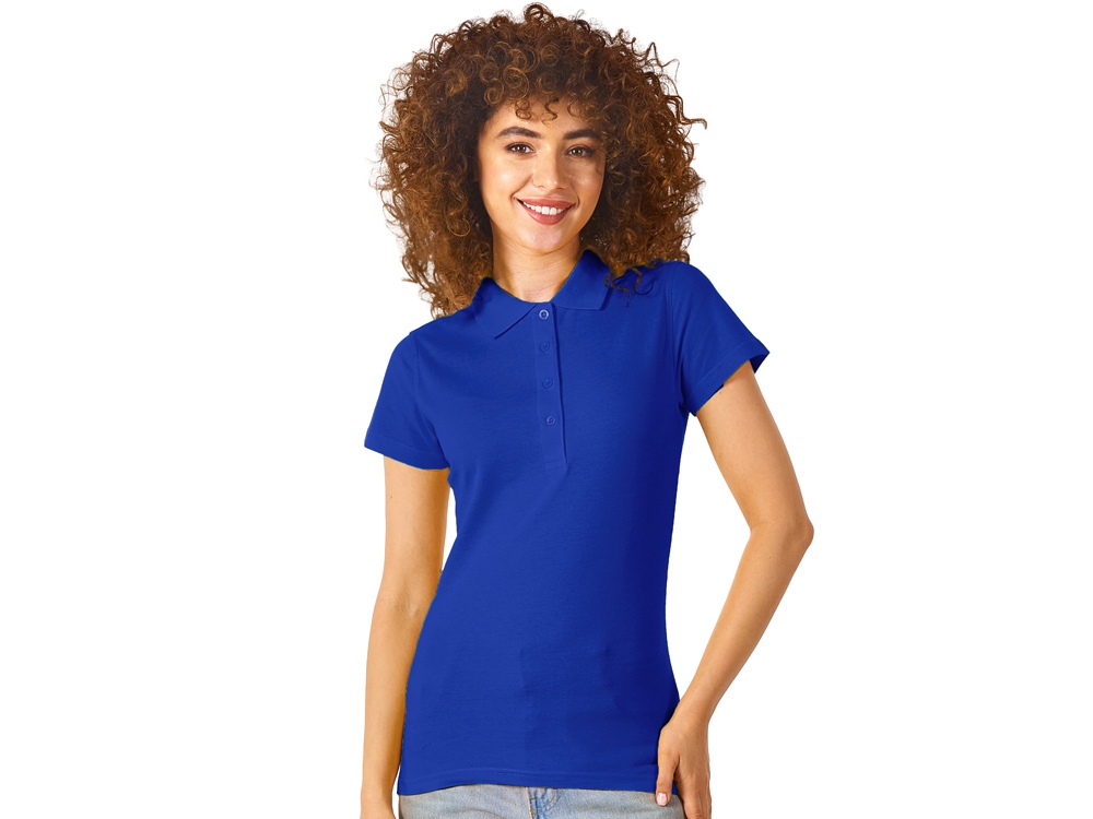 Женская рубашка-поло First. Воротник 1х1. Обшивка внутри воротника. Мужская и детская модели с 2 пуговицами, женская - с 4 пуговицами. Пуговицы с гравировкой в тон. Пике, 100% хлопок. 160 г/м2. Данная модель на 1 размер больше модели женского поло First.